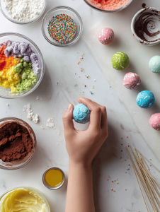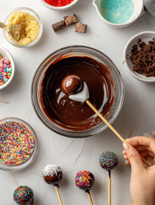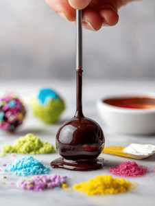 Step 4: Prepare your coating by melting more chocolate, adding food coloring, or cocoa powder for variety.