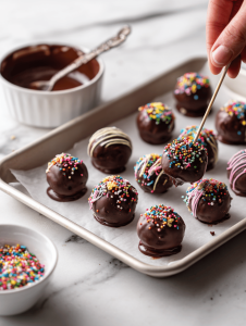 - Chill the cake balls before dipping to prevent melting or cracking.