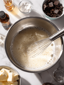 - Meanwhile, melt the chocolate in a heatproof bowl over simmering water, stirring until smooth and shiny. Use a candy thermometer to ensure the temperature stays around 105°F (40°C).