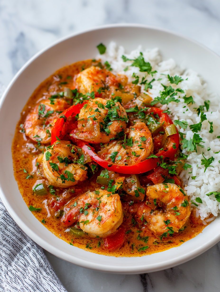 • This recipe came together out of a need for something satisfying but quick, especially after a long day. I remember the first time I tried making étouffée, fumbling through roux and spices, worried I’d ruin it. But the magic really happens when the shrimp hits that hot pan—brightens everything instantly.