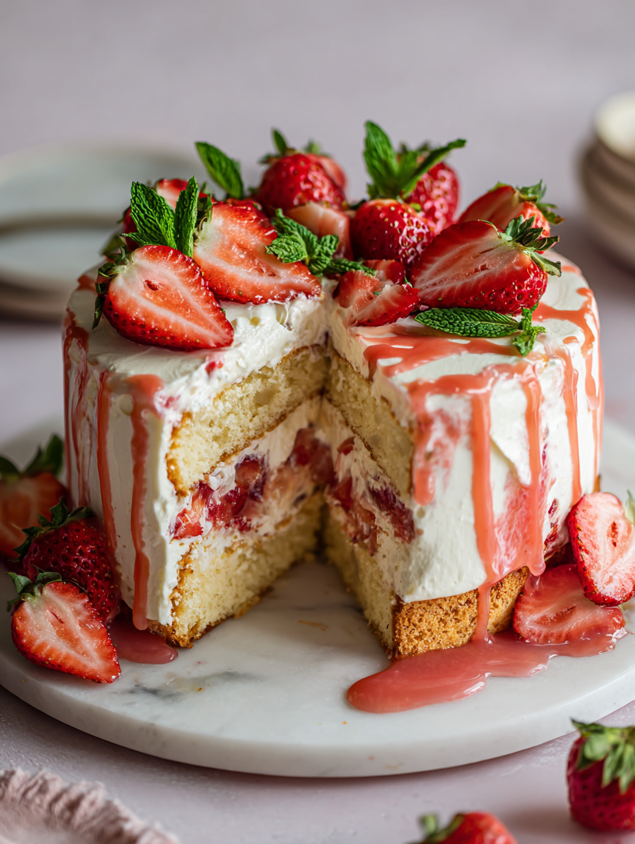 - Top the cake with strawberries just before serving to keep them vibrant and juicy—if stored too long, they may soften or release excess moisture.