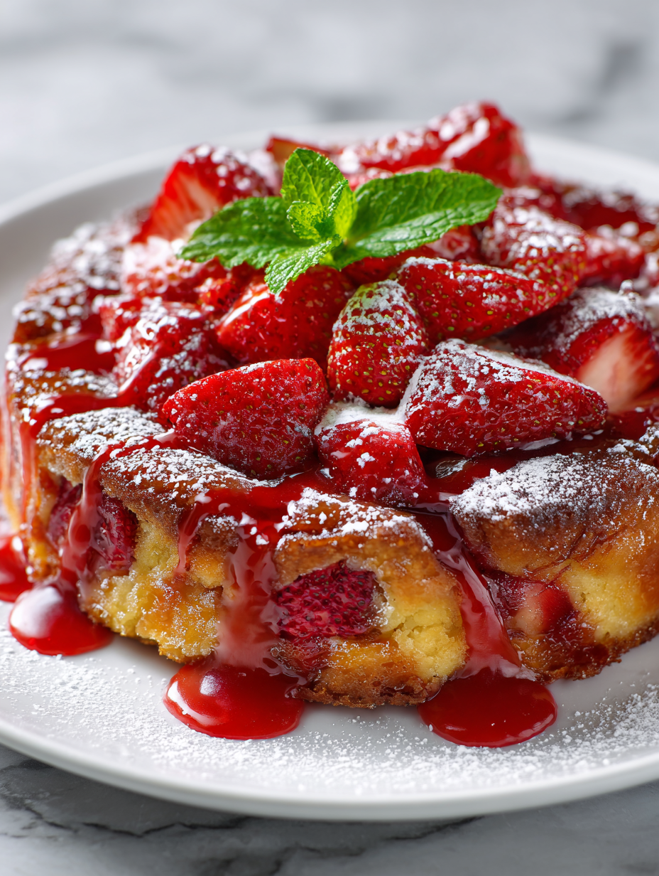 What really draws me in is how this cake captures the juicy, vibrant flavor of fresh strawberries inside a buttery, tender crumb. The oozing strawberry jam and the slightly cracked crust make each bite feel like a little surprise. It’s not about presentation here; it’s about the messy, joyful process of baking and sharing something that looks wild but tastes perfectly fresh and comforting.